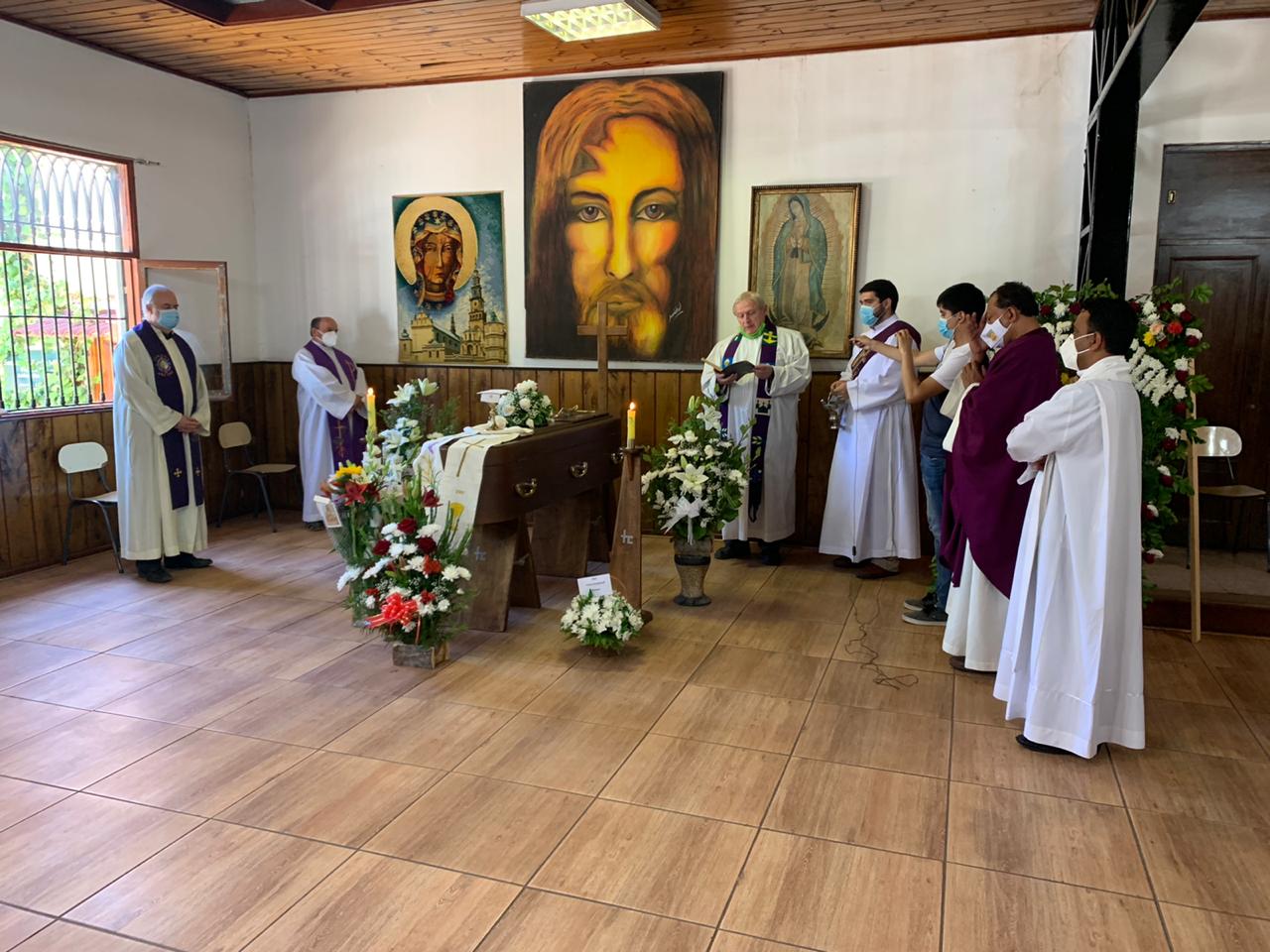 Las exequias se realizaron en la Casa de Retiro de La Florida donde fue acompañado por un restringido número de público, principalmente sacerdotes verbitas, debido a la cuarentena impuesta por la autoridad sanitaria para la Región Metropolitana durante los fines de semana. No obstante, muchas personas siguieron la transmisión de la misa por Facebook.