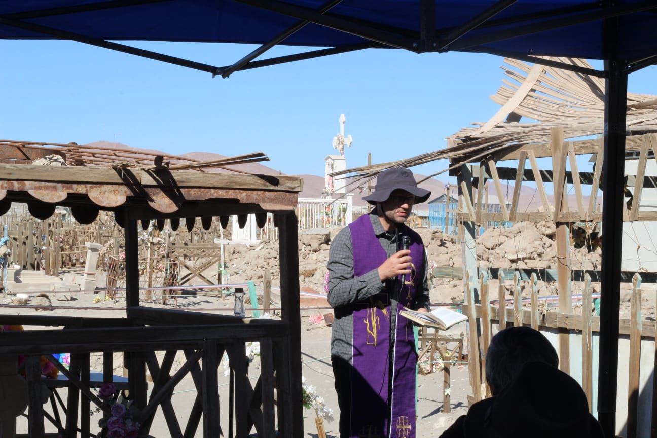 “Los que murieron y que recordamos hoy, eran los trabajadores de salitreras. Ellos murieron porque luchaban a tener mejores salarios, una jornada laboral más corta, y mejores condiciones de trabajo” dijo historiador Oscar Torres en su oración. Después de las palabras de don Óscar, la actividad se continua con inauguración placa de los caidos y entrega simbólica de coronas a fallecidos. También Padre Carlos encargo de la parroquia de Huara hizo una oración y bendición a las tumbas.